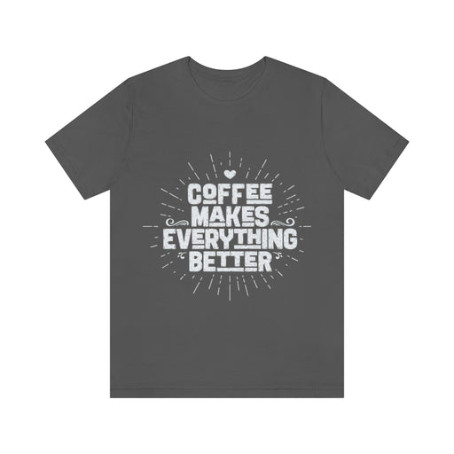 Experience the incredibly inspiring message of "Coffee makes everything better" with this classic unisex jersey short sleeve tee. This mantra reson...